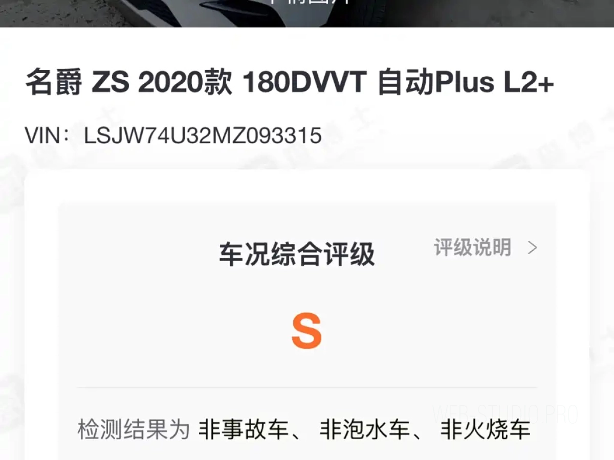 На странице представлены основные характеристики автомобиля MG ZS 2021, включая двигатель, пробег, состояние и комплектацию.