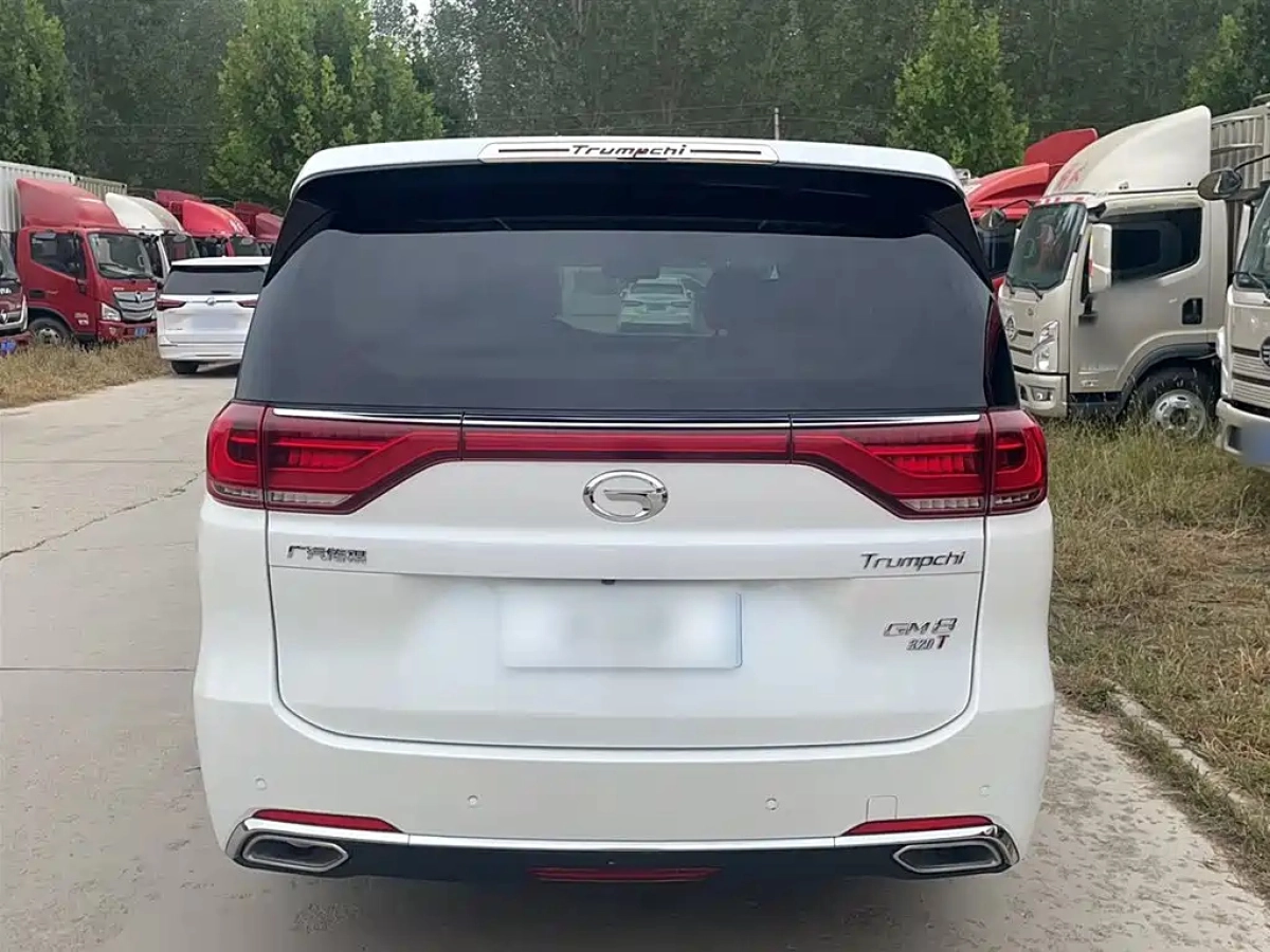 На странице представлены основные характеристики автомобиля TRUMPCHI M8 2019, включая двигатель, пробег, состояние и комплектацию.