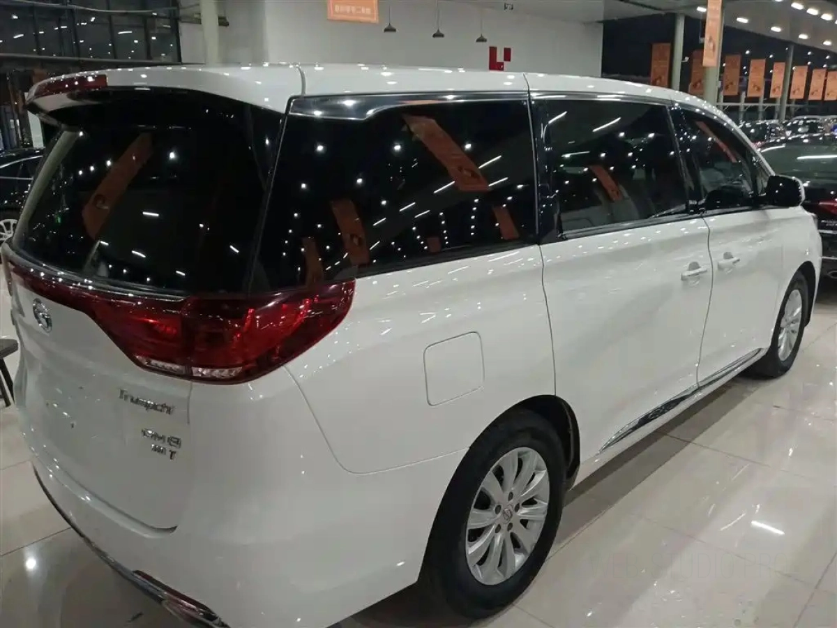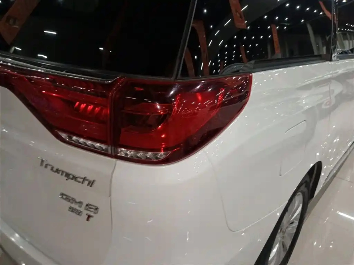 На странице представлены основные характеристики автомобиля TRUMPCHI M8 2019, включая двигатель, пробег, состояние и комплектацию.