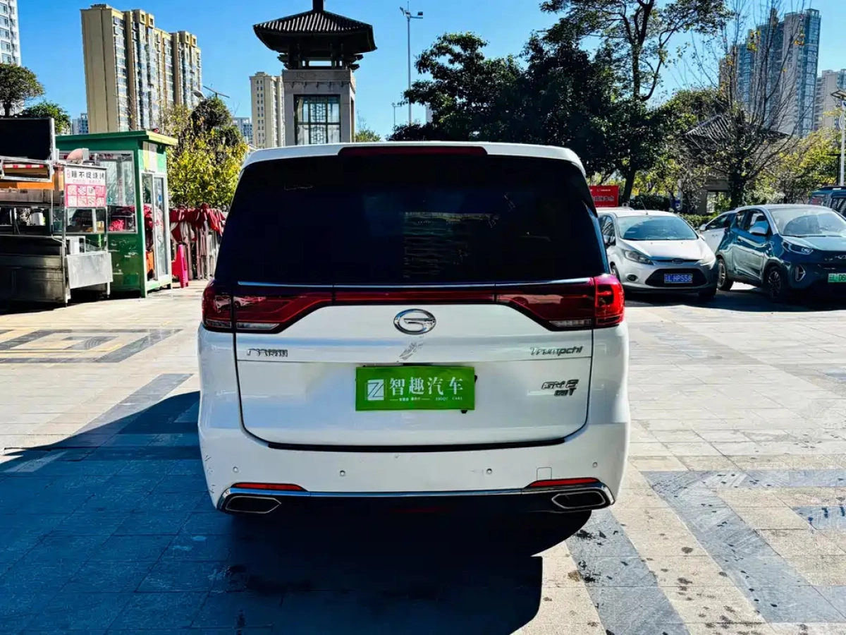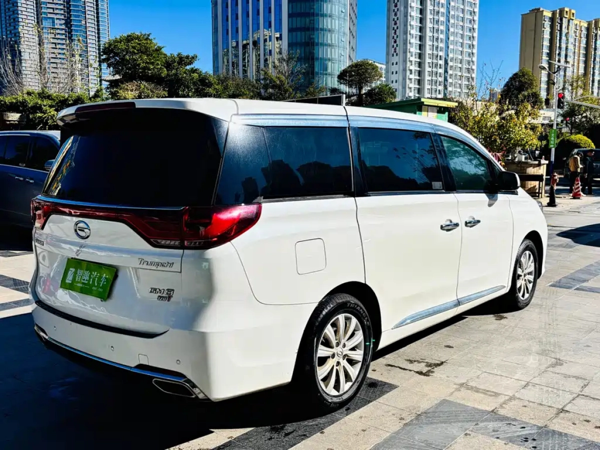 На странице представлены основные характеристики автомобиля TRUMPCHI M8 2019, включая двигатель, пробег, состояние и комплектацию.