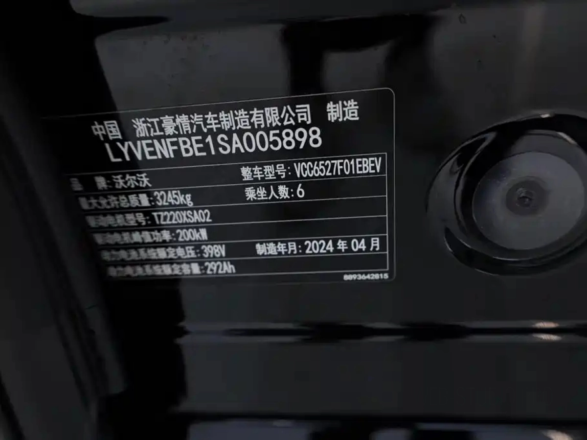 На странице представлены основные характеристики автомобиля VOLVO EM90 2024, включая двигатель, пробег, состояние и комплектацию.